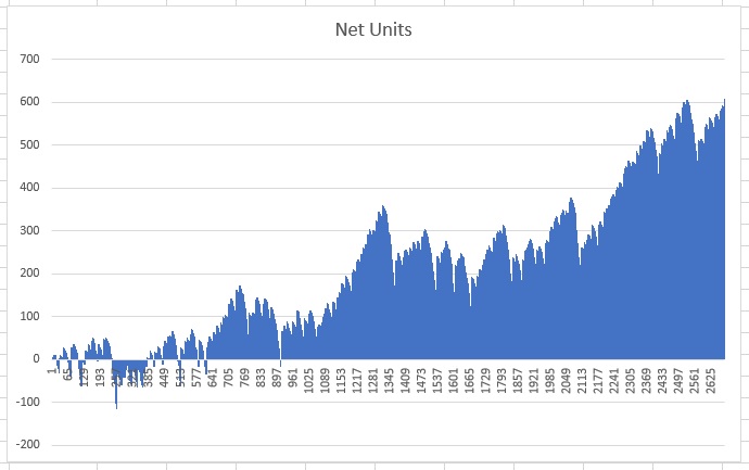 Here's a new system for you, always using a different kind of bet method, never seen before in any other previous one. It's called 3PP - 3 Player Parlay Baccarat System. It's written for Baccarat and would work on any even bet system, too. It can be played on any Baccarat game, EZ, Dragon and commission based baccarat too. Commissions don't really matter, because we will be placing bets on Player only anyway. As the name implies we will be parlaying 3 Player decisions. A parlay is when we win our bet, we let it ride on the table to replicate itself. So one win will have 2 chips on the table. The second win 4 chips and the third win will have 8 chips on the table. With the initial investment of 1 units, the parlay will gain us 7 units commissions included, since there are none. Now if you bet flat on this kind of strategy, the system does not win on the long run. That's where the special method of 3PP comes handy. Using this method, profits keep rising continuously. In fact, following is the performance chart of 3PP: