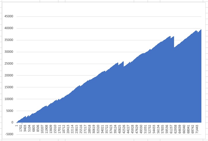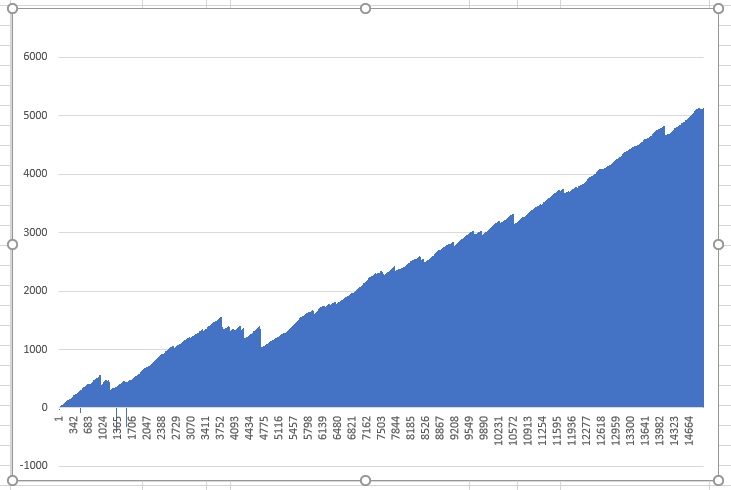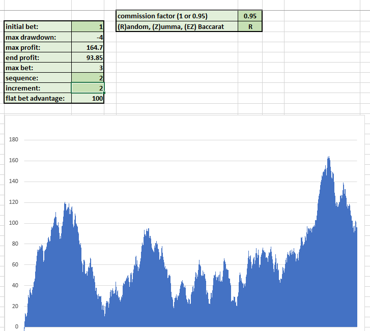 starting with a sequence of 1, betting 1 unit at a time, totally flat