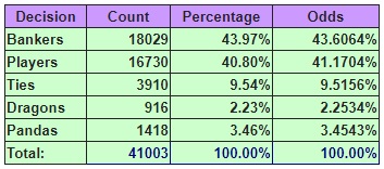 The random EZ Baccarat shoes are determined based on the following long term