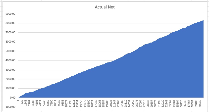 A perfectly rising profit graph, showing the accuracy of the formula.