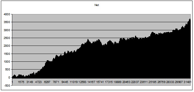 Most systems try to gain 1 unit profit at the end of a run.  This system's run win goal is +50 units with a stop loss of -25.  And there are quite many more +50 unit runs than -25 unit abandoned runs, which makes this system profitable on the long run with no doubt and question.