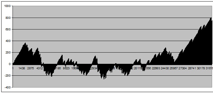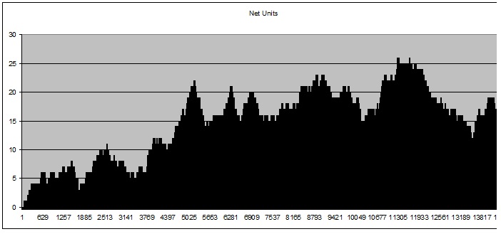 As per the total drawdown, a lifetime bankroll of 300 units will be quite ample to use IBS11 to generate profits indefinitely. Here are the performance charts of IBS11 for all Zumma tester books: for the 600 shoe: