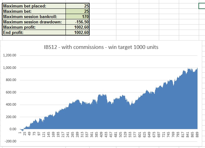 This option is totally infallible, closing all runs with no exceptions and each run profits 12 units. Some other options have a milder version by accepting some abandoned runs and the maximum bet is not more than 50 units, as a suggested parameter and can still be flexible. Some variations do not limit the closure of the run to +12, but to at least +12 and more. The bet selection also varies from option to option, at times P only, at times B only, at times both on Player and Banker. The system wins on all versions of the Baccarat game, commission and no-commission based games. Option 7, for instance, will show you in the system document, bet by bet, how IBS12 achieves 1000 units within only 13 shoes taking commissions into account. All 13 shoes are documented in the system file. Here's how IBS12 performs on a commission based Baccarat: