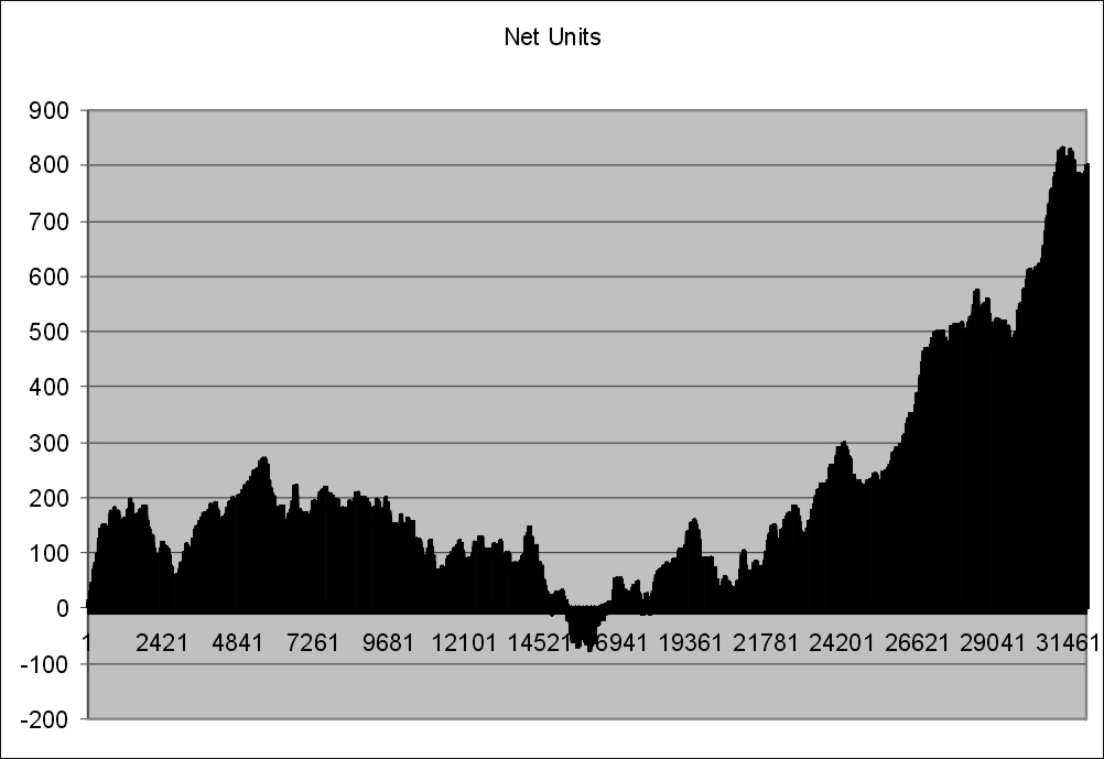 Eric St. Germain, completing 13,441 runs with a win and abandoning 861 runs. This is achieved with a maximum bet never exceeding 8 units. Some of you may say with commissions, that should be less. Well, I have another surprise for you. IBS6 has a very special way of handling commissions. It's not just handling commissions, but has a special strategy of gaining extra profit, due to commissions. So, you end up winning not just a bit more, but 2.5 times more. How is that possible? It's all explained in the document. You will see that by betting a little