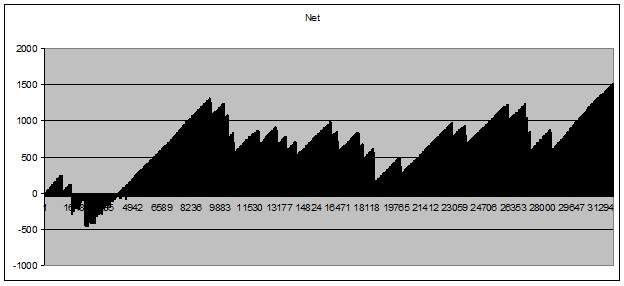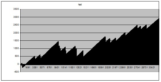 This portion generates +2,324 units for 600 shoes, averaging 2.9 units per shoe. There is a lower budget version of the SC system, should you find the 100 unit maxbet and the 200 unit session bankroll too high. The lower budget system sets a max bet of 30 units and a maximum session bankroll of 50 units only and following are the stats for the first 500 Zumma shoes of the 1K set: