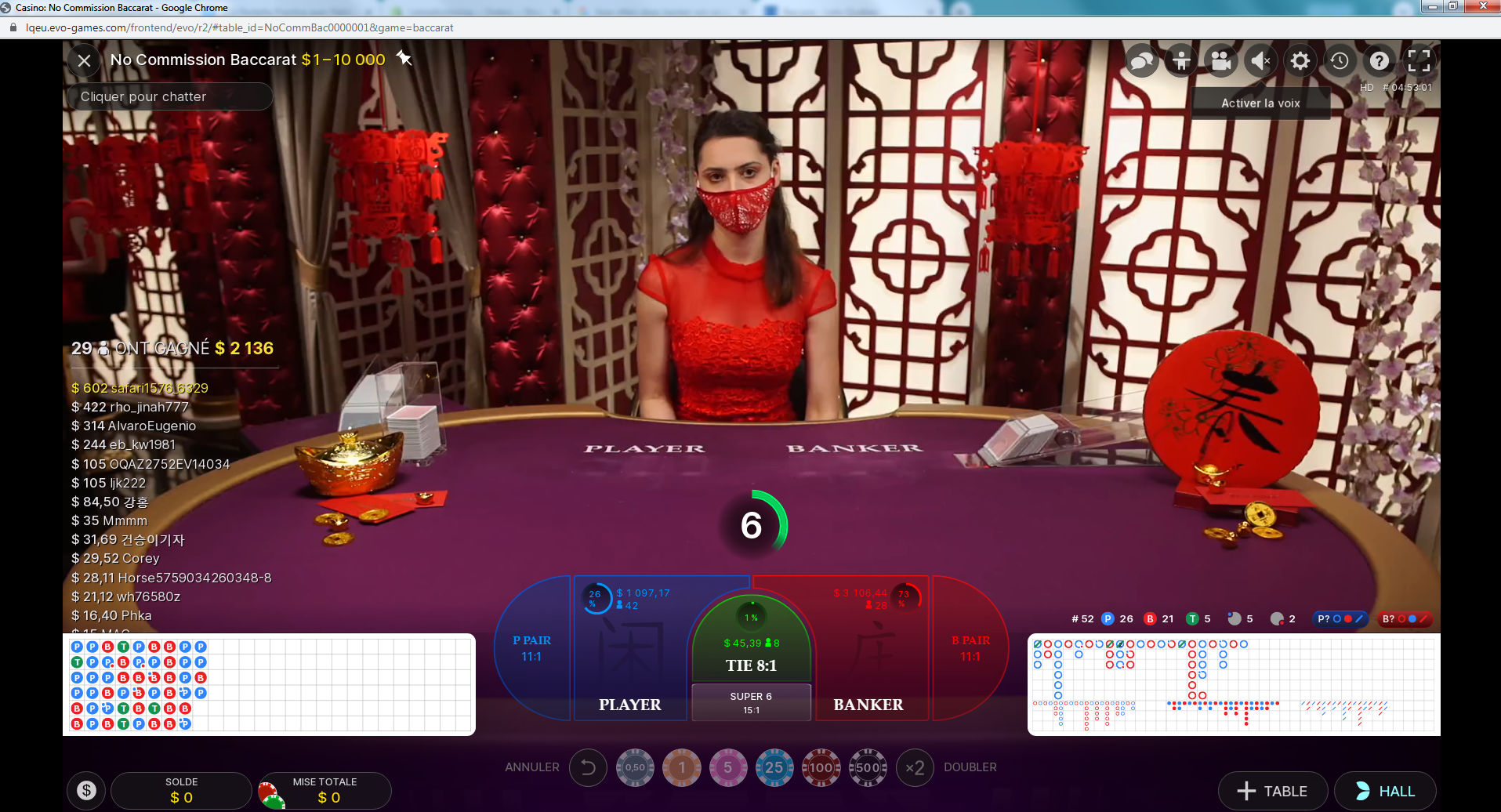 Non-Commission Baccarat means a version of Baccarat where wagers placed on the Banker shall be paid at odds of 1 to 1 except in the event when the Banker wins on Six Points, in such an event, only 50% of the amount wagered on the Banker shall be paid. The frequency of the Banker wins with a value of 6 is about every 19 hands on average or about 4 times in a shoe. The good news is that a lot of on-line casinos with live dealers now have this version of Baccarat. Thus we no longer have to worry about 5% commission on each Banker win, nor Dragons or Pandas such as in EZ-Baccarat. During this time of the pandemic, most of us prefer to play on-line anyway, as most brick-and-mortar casinos are back to closure. Here’s a typical performance chart of the system.