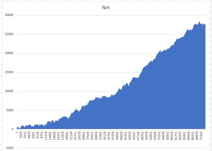 Profits keep rising and rising. Each time you run a random sample of 1000 random shoes, you will get a similar chart, an absolutely incredible performance. At times profits for 1000 shoes climb above 30,000 units!! The system document will explain in detail why this system works so well with its special bet selection and method combined. The reason the 1000 Zumma shoes have not been used, is because we have no idea which Banker decision has the count of 6. 1000 random shoes have been tested 222 times, thus 222,000 shoes, and in neither case did we get a negative result. The provided simulation uses the true odds of Baccarat including the Banker decisions with the count of 6. Thus the above chart reflects the true performance of the system. Parameters used to achieve this performance are: