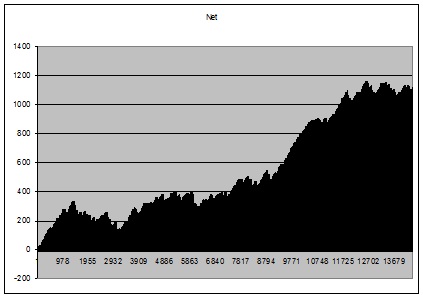 If you follow the diagonal lines and sum up the figures, yes, you get the Fibonacci sequence, that we are all acquainted with and some gambling systems have been devised using this sequence. The Triangle System will use Pascal's Triangle in a very special way and you will be certainly amazed with the results, whether you use it for even bets in Baccarat, Roulette, Craps, etc. or dozens in Roulette. Just to give you an idea, the Triangle system beats all Zumma tester books, the 600 shoes and the 1K in all Zumma and random mode. For the Zumma 600 shoes, it generates 2162 units. For the Zumma 1K shoes, it generates 1322 units for the first half and 1778 units for the second half. Thus, a total of 5262 units are generated for the 1600 Zumma shoes, averaging 3.3 unit per shoe. Since your highest bet never exceeds 20 units, you can use any chip denomination that your budget allows. All those results are shown in MS-Excel simulations and will be provided to you upon your purchase. You may request different bet selections that will show the same type of results. Profits constantly and consistently rise, as shown in the following performance chart: